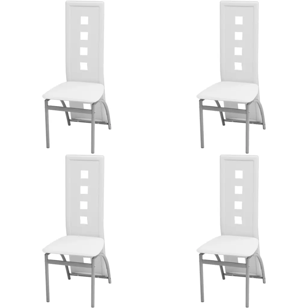 - 4 x söögitool valge kunstnahast polsterduse ja pulbervärvitud terasraamiga