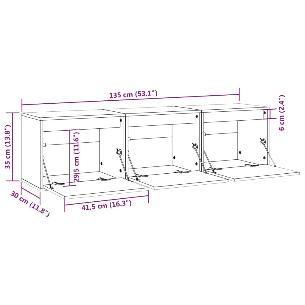 • 3 x telerikapp mõõtudega 45 x 30 x 35 cm (laius x sügavus x kõrgus)