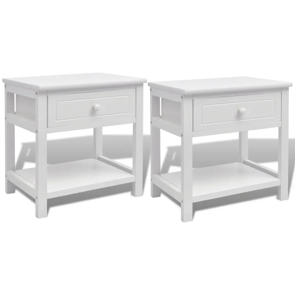 Lihtsa ja stiilse disainiga valged puidust öökapid loovad magamistuppa korrastatud ja rahuliku ilme. Komplekt sisaldab kahte kappi, millest igaühel on üks sujuvalt liikuv nupuga sahtel väiksemate esemete hoidmiseks ning avatud alumine riiul lisahoiuks või dekoratsioonide jaoks. Kapid sobivad kasutamiseks öökappide, telefonialuste, külgkappide või väikeste hoiukappidena vastavalt vajadusele.