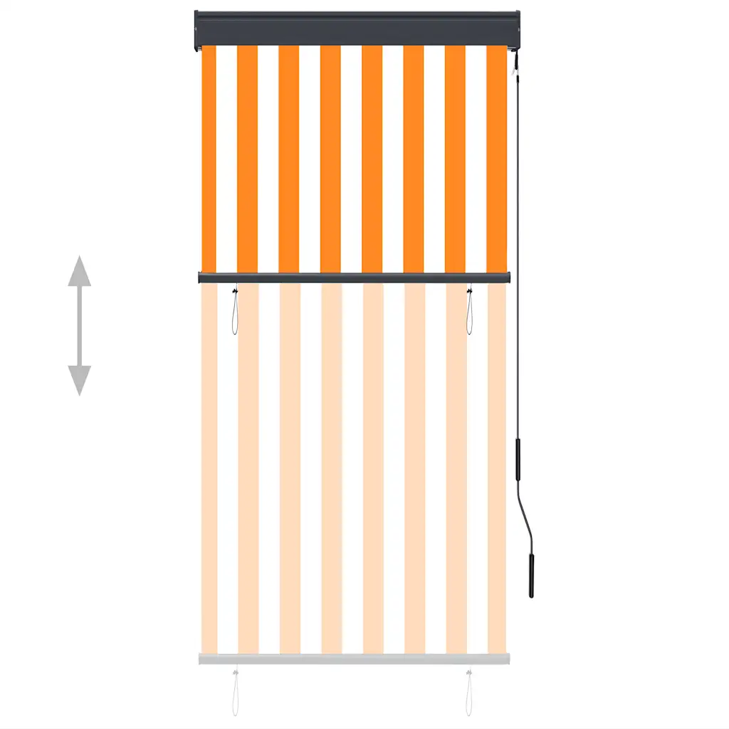 See valge-oranž väliruloo mõõtudega 80 x 250 cm aitab kaitsta rõdu, terrassi või veranda ala otsese päikese ja liigsesooja eest ning loob päevaseks ajaks privaatsust. Hingavast PA-kattega polüesterkangast valmistatud ruloo laseb õhul liikuda, kuid tõkestab enamiku UV-kiirtest ja vähendab pimestamist.