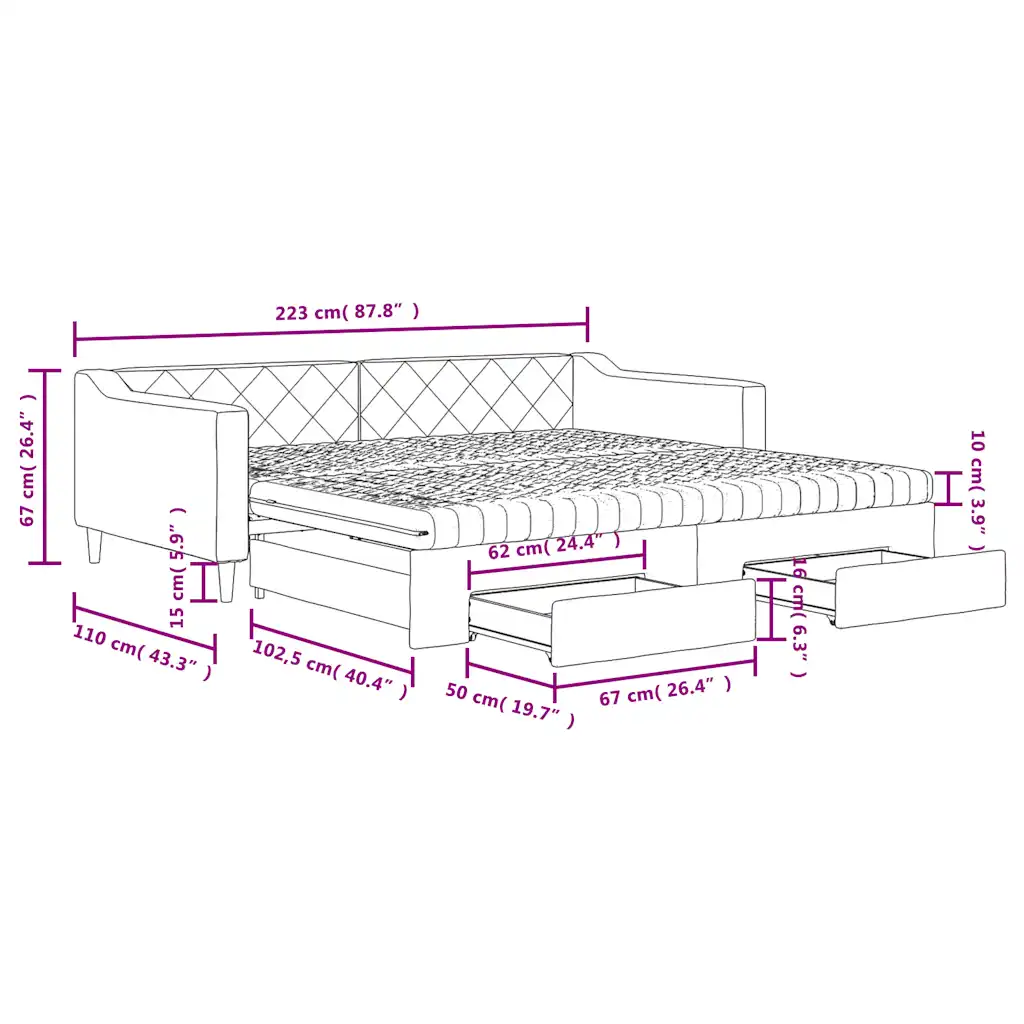 See praktiline väljatõmmatava osaga diivanvoodi ühendab endas mugava istumiskoha ja täismõõdus magamispinna, sobides hästi elutuppa, külalistuppa või noortetuppa. Päeval kasutate seda tavalise diivanina, öösel muutub see ühe liigutusega kaheks magamiskohaks ning kaks integreeritud sahtlit loovad lisaruumi voodipesu ja muude esemete hoiustamiseks.