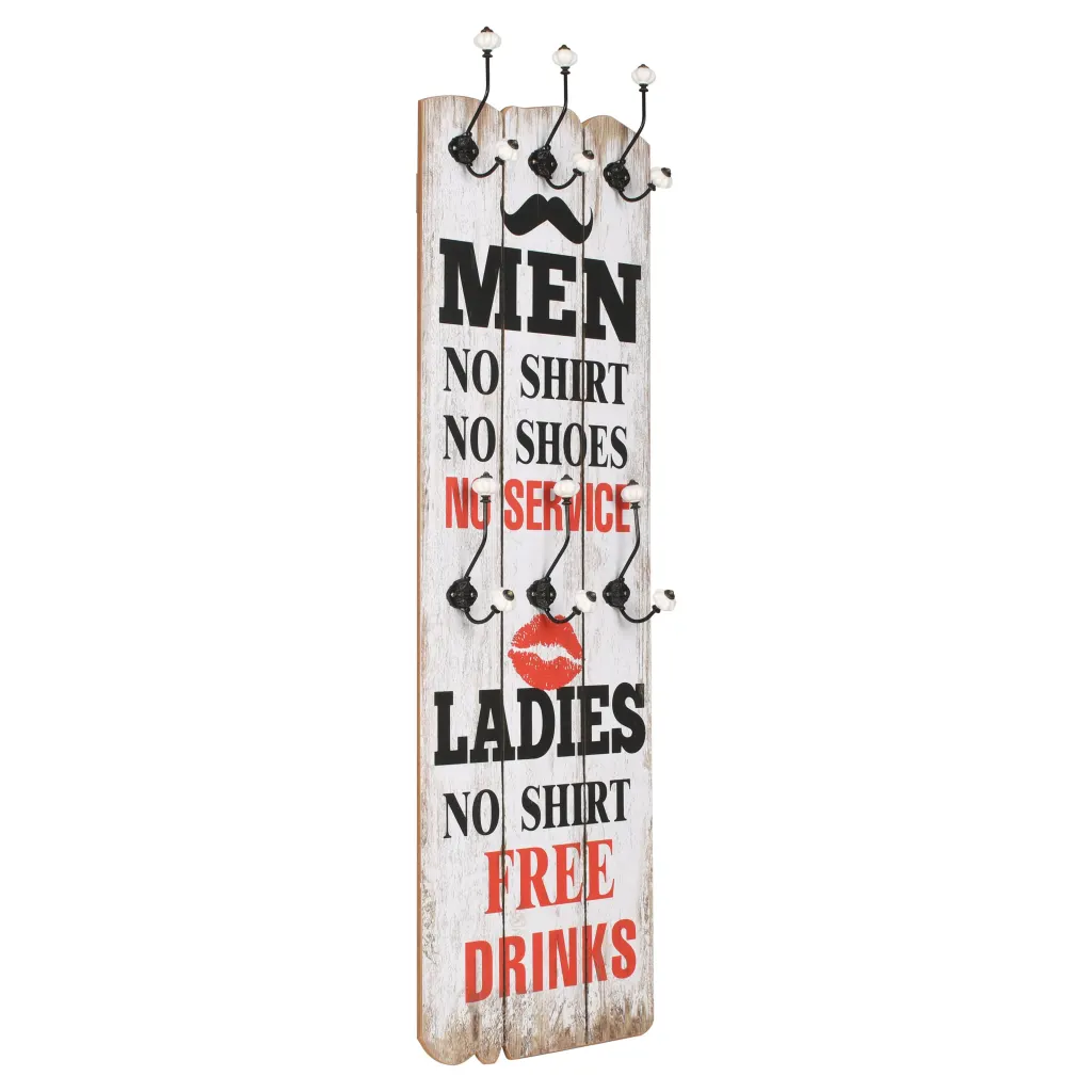 See mitmevärviline seinale kinnitatav riidenagi ühendab praktilise hoiulahenduse ja dekoratiivse vanaaegse trüki. Ühe MDF-laua külge kinnitatud kuus vastupidavat metallkonksu pakuvad piisavalt ruumi mantlite, kottide ja aksessuaaride riputamiseks, muutes esiku või garderoobi korrastatumaks ja isikupärasemaks.