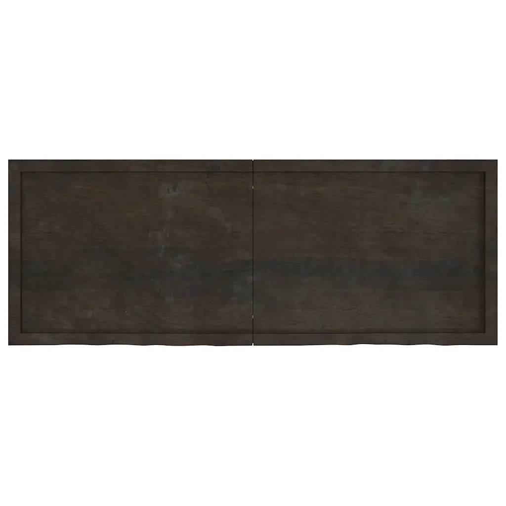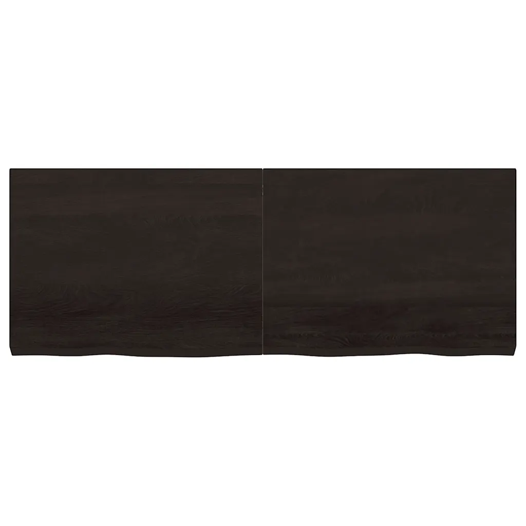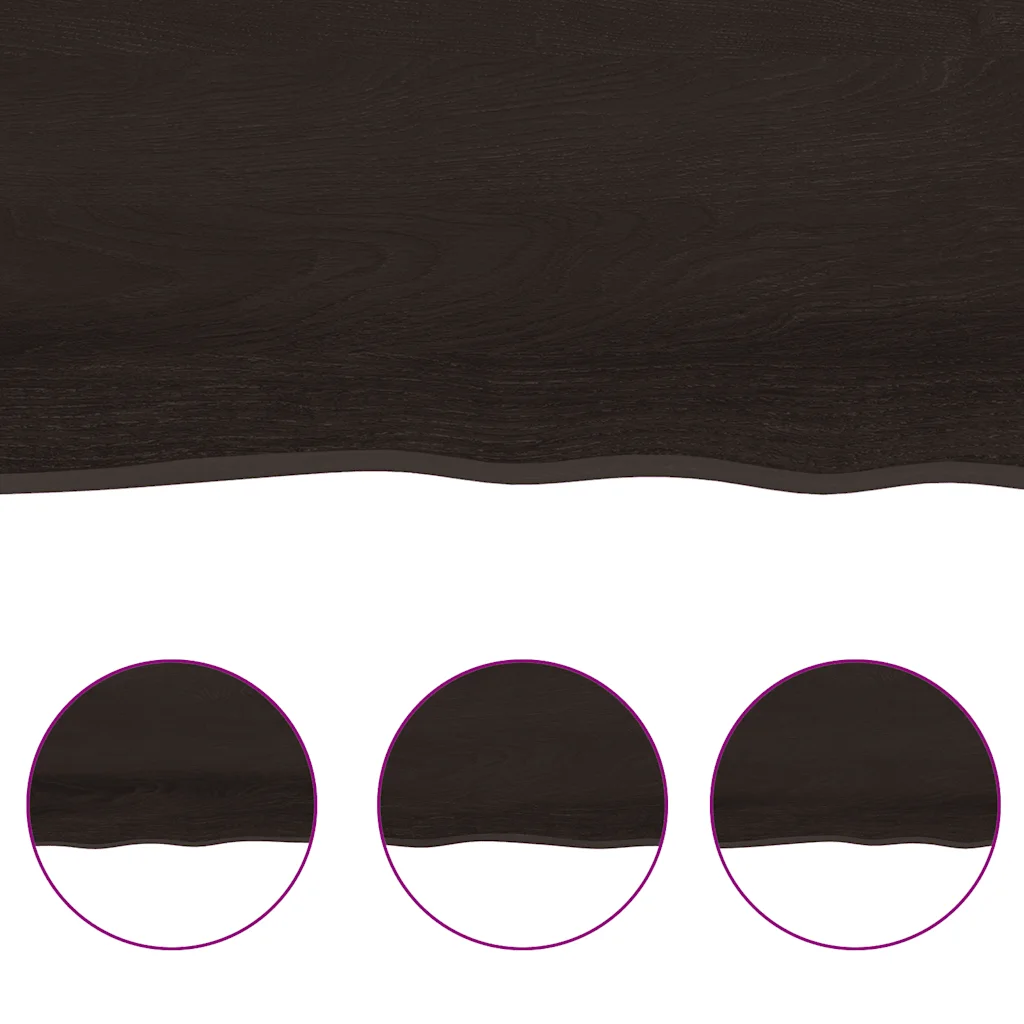 Tumepruun tammepuidust vannitoa tasapind loob vannituppa sooja ja modernse ilme. Naturaalsete servade ja töödeldud pinnaga plaat sobib hästi valamukapile või riiuliks, pakkudes vastupidavat pinda igapäevaseks kasutamiseks.