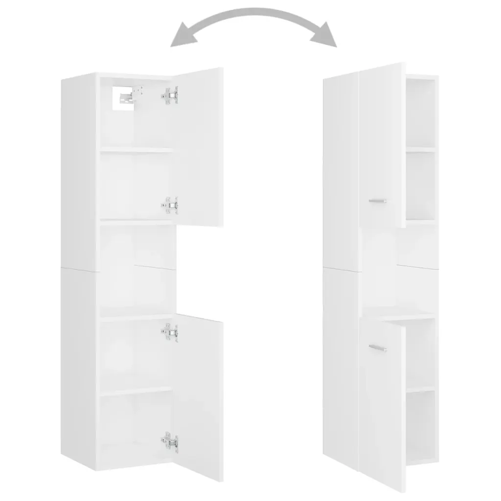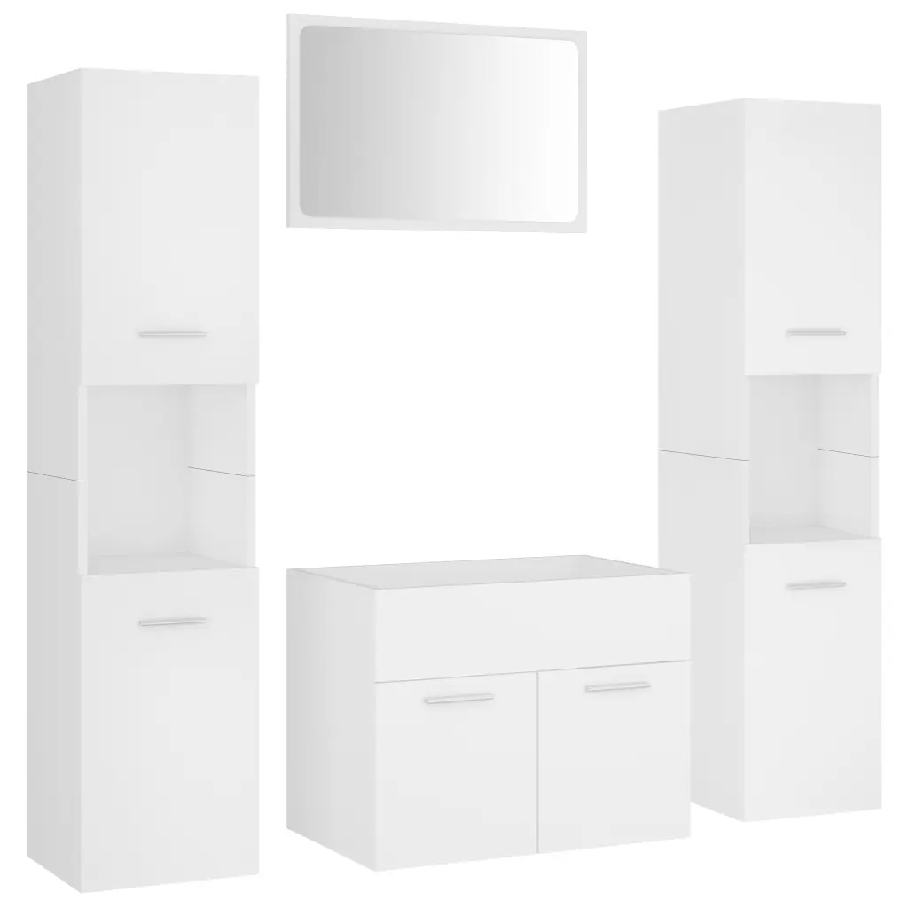 See valge vannitoamööbli komplekt aitab luua vannitoas lisahoiuruumi ja ühtse, rahuliku ilme. Komplekt koosneb 60 cm valamukapist, kahest kõrgest kapist ja peeglist, mis sobituvad omavahel stiilselt ning pakuvad ruumi igapäevaste tarvikute organiseerimiseks. Tehispuidust ja akrüülist pinnad on siledad ja neid on lihtne niiske lapiga puhtaks pühkida.