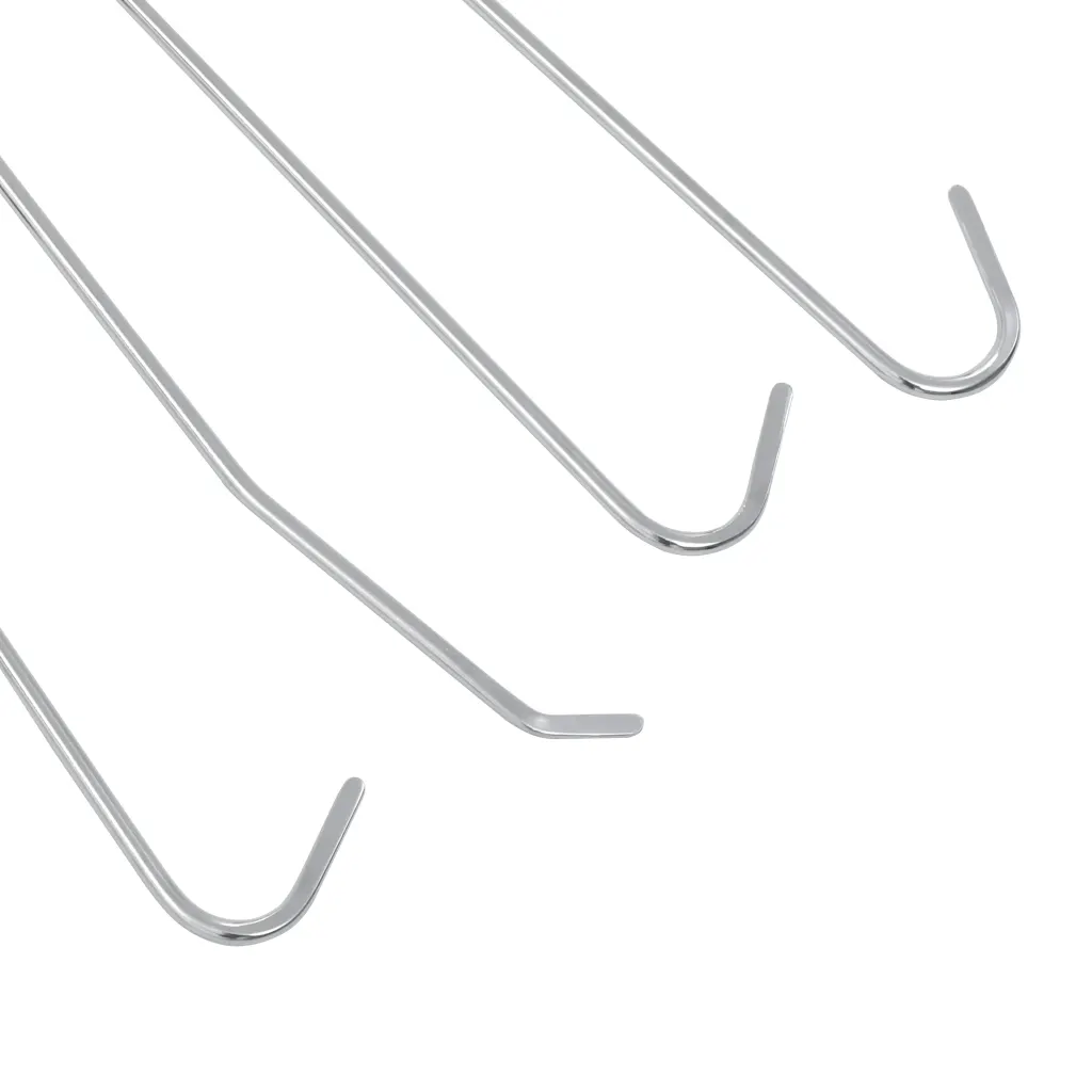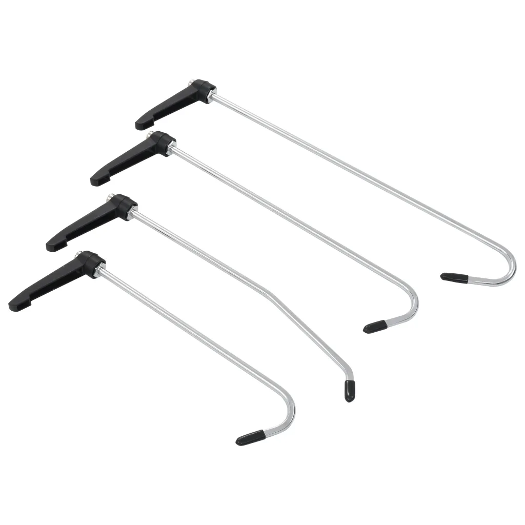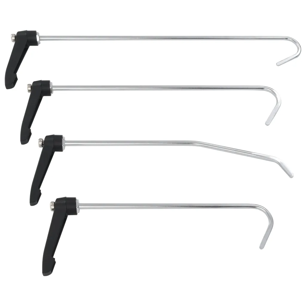 - Neli eri mõõdus konksu – komplekti kuuluvad konksud mõõtudega 30 x 12 cm, 24,5 x 10 cm, 32,5 x 13 cm ja 40,5 x 16 cm, et valida sobiv tööriist vastavalt ligipääsule.