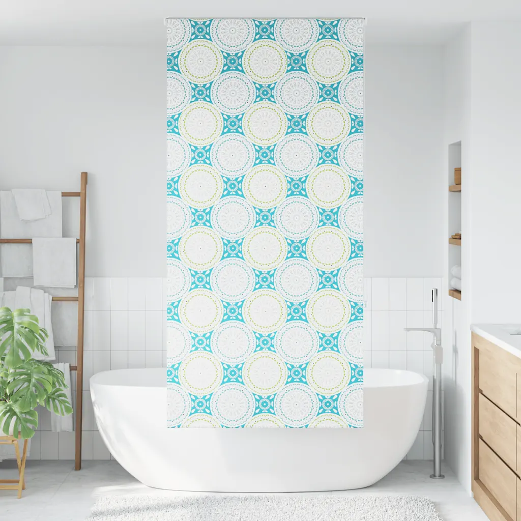See ornamentmustriga sinine duširull-ruloo ühendab privaatsuse, veekindluse ja paindlikud paigaldusvõimalused. Kui soovite vannituppa praktilist ja samas dekoratiivset lahendust, mis hoiab ruumi kuivemana ja korrastatumana, on see ruloosüsteem hästi sobiv valik.