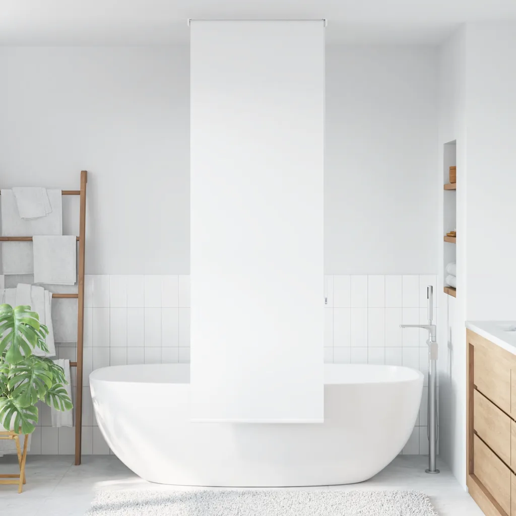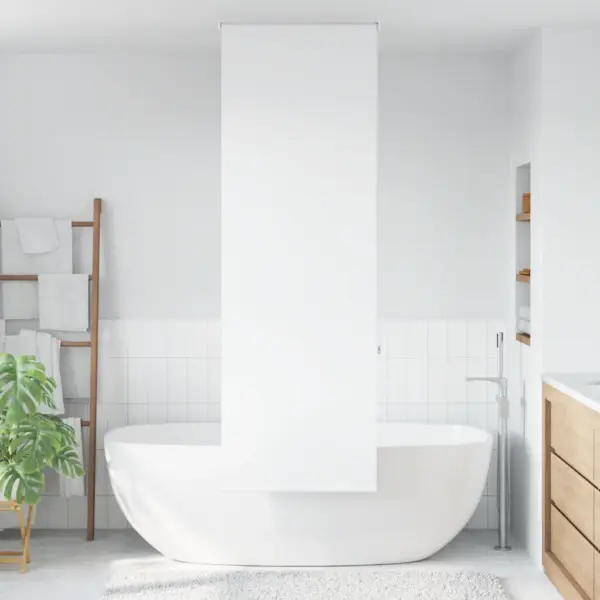 • Ruumisäästlik ülesrullitav disain – kangas rullub kasutusvälisel ajal kompaktselt üles, jättes vannitoa visuaalselt avaramaks.