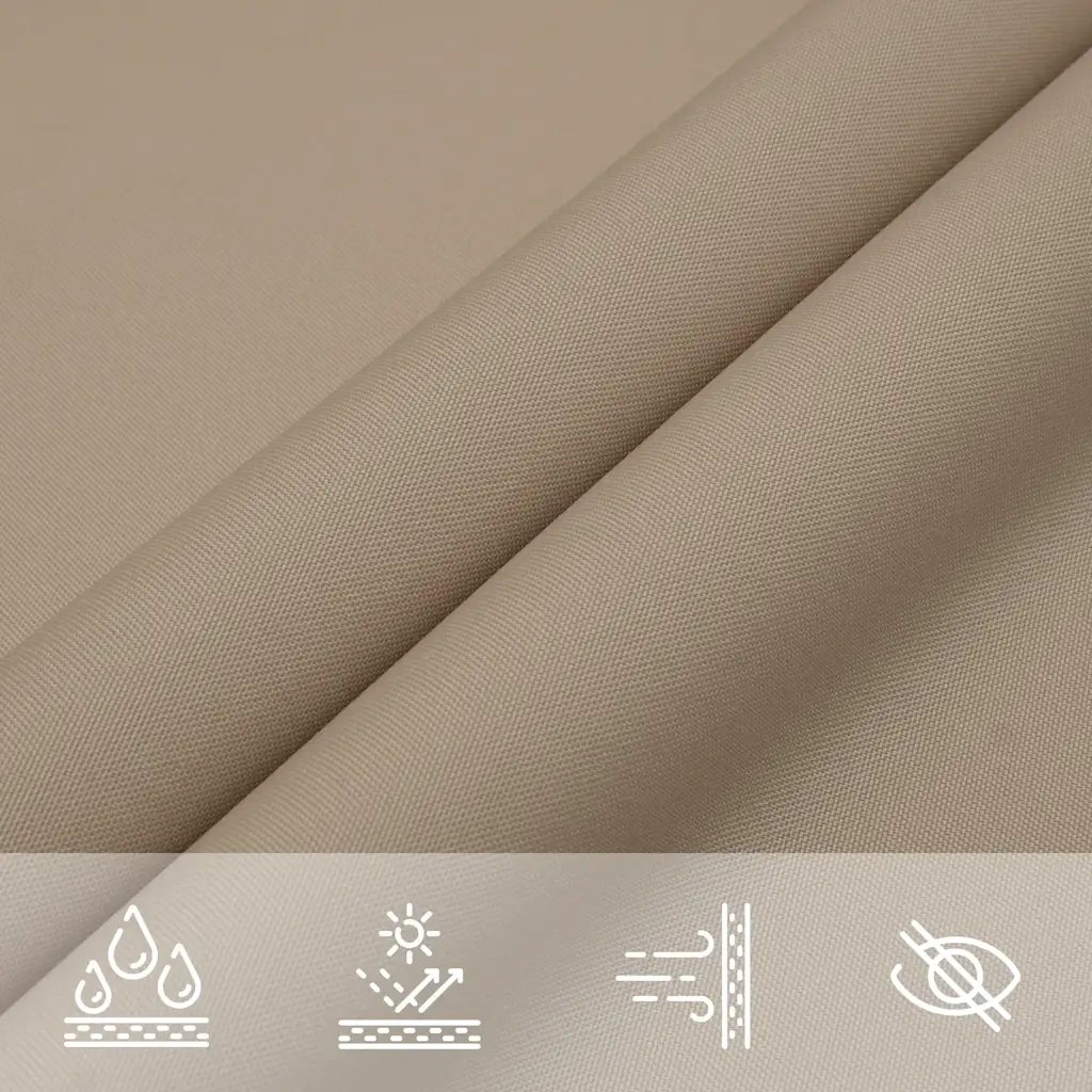 - UV-kaitsega materjal vähendab otsese päikesekiirguse mõju ja aitab luua jahedama varjualuse.