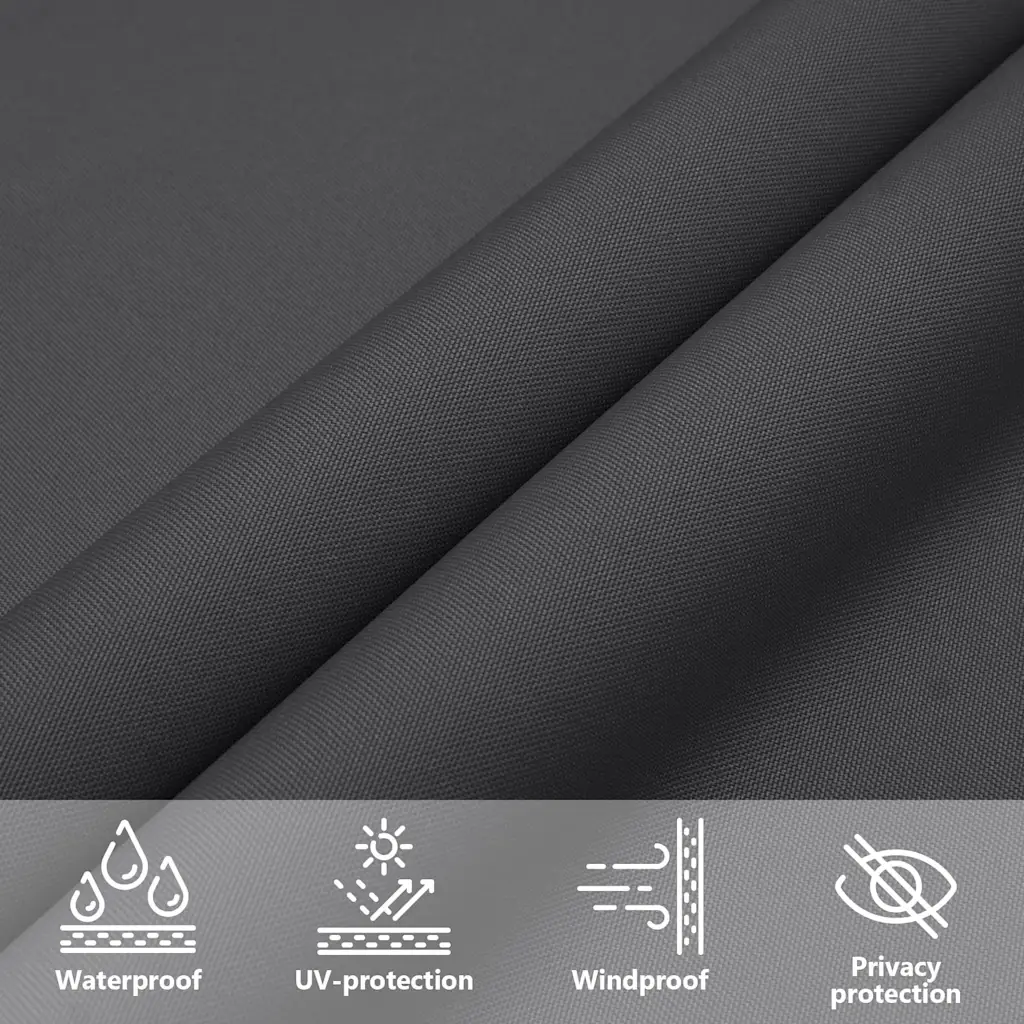 Kolmnurkne päikesepuri loob aias, terrassil, rõdul või laste mänguväljakul meeldiva varjulise ala, kaitstes nii otsese päikesevalguse kui ka vihma eest. Vastupidavast PU-kattega oxford-kangast valmistatud varjestus on hallitus- ja UV-kindel ning sobib hästi pikaajaliseks välitingimustes kasutamiseks. Antratsiithall toon ja 4 x 5 x 5 m mõõdud võimaldavad katta suurema istumis- või mänguala.