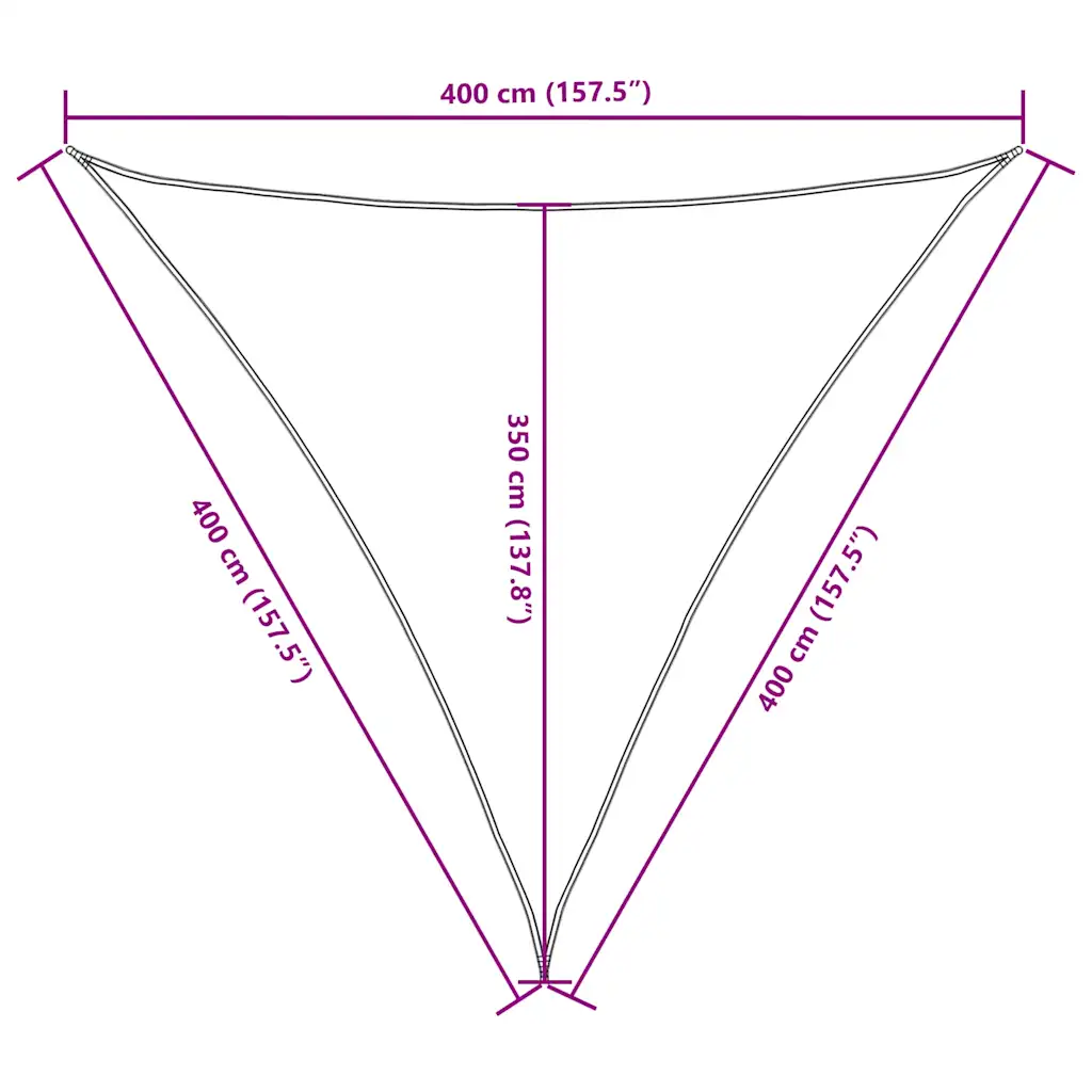 • Kolmnurkne kuju 4 x 4 x 4 m võimaldab luua laia varjutsooni, mis sobib hästi istumisala või mängunurga katmiseks.