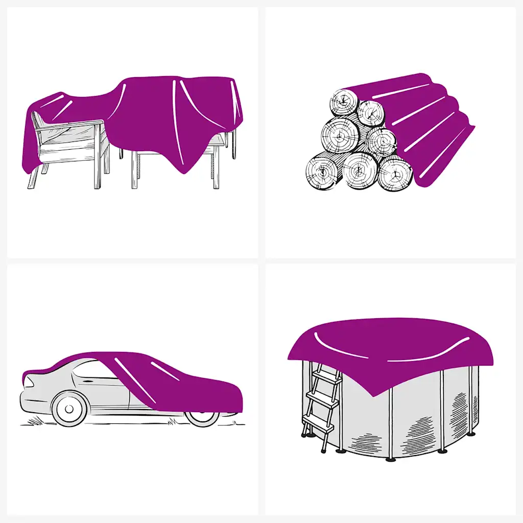 • Mitmekülgne kasutus sobib aiamööbli, tööalade, ehitusmaterjalide ning lahtiste haagiste või pikapite katmiseks ja ajutiseks varjualuseks.