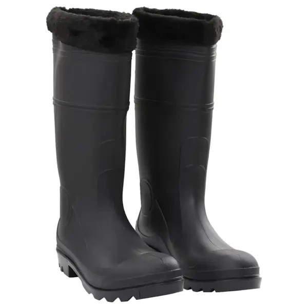 Need mustad PVC kummikud eemaldatava voodriga kaitsevad jalgu vihma, pori ja lompide eest. 40,5 cm kõrgune sääreosa ja vooderdus sobivad nii linnas kui aias liikumiseks, hoides jalad mugavalt kuivana ja soojas.