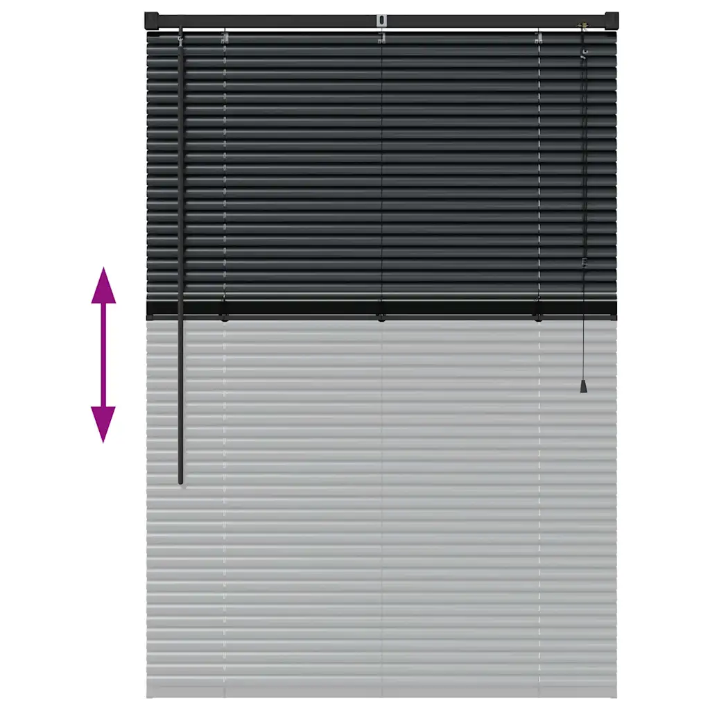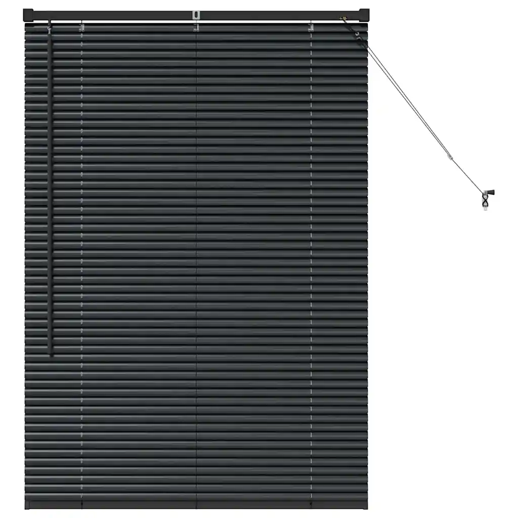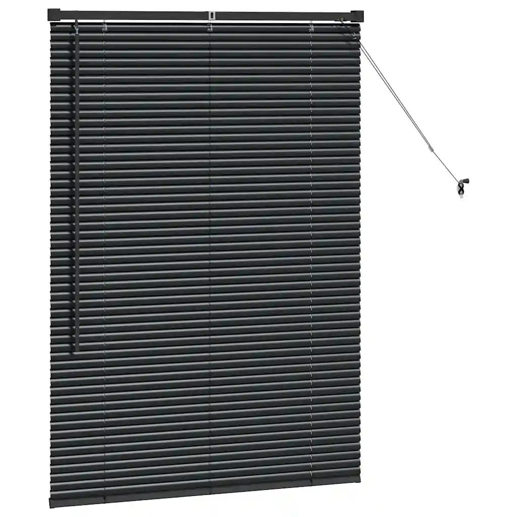 Must Veneetsia alumiiniumruloo mõõtmetega 130 x 90 cm on praktiline aknakate elutuppa, kööki või kontorisse. Reguleeritavad lamellid võimaldavad täpselt suunata valguse hulka ja privaatsuse taset, luues ruumis mugava ja kaasaegse atmosfääri.