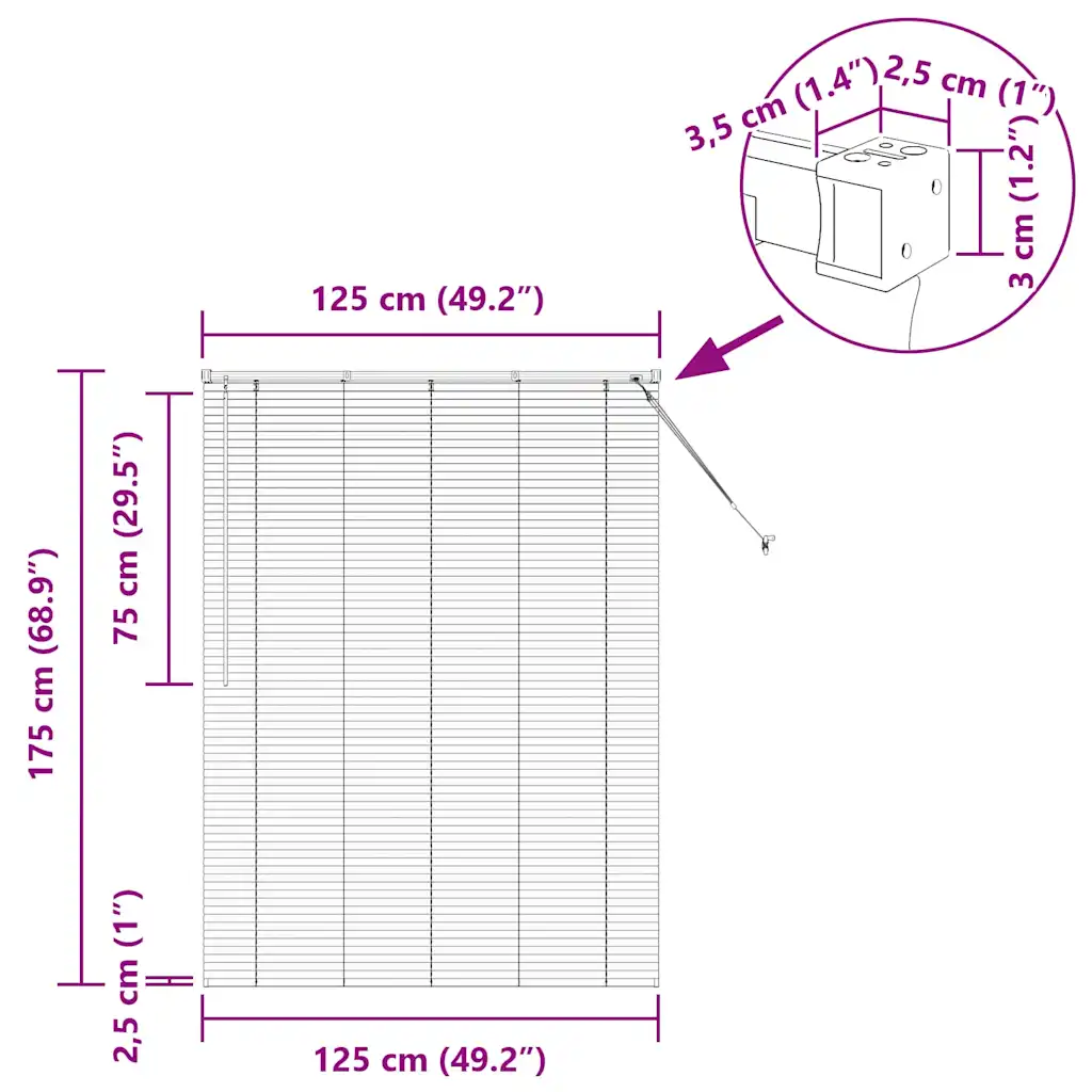 See must Veneetsia ruloo mõõtmetega 175 x 125 cm sobib elutuppa, kööki ja kontorisse, kus on vaja diskreetset aknakattet. Ruloo on valmistatud vastupidavast alumiiniumist ning võimaldab täpselt reguleerida valguse hulka ja privaatsust terve päeva vältel.