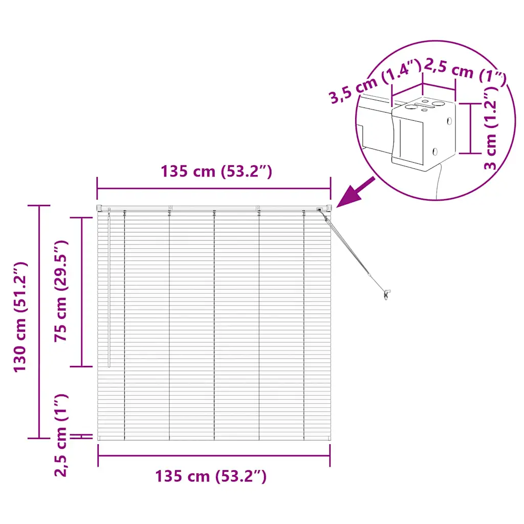 Komplekt sisaldab 1 Veneetsia rulood mõõtudega 130 x 135 cm mustast alumiiniumist.