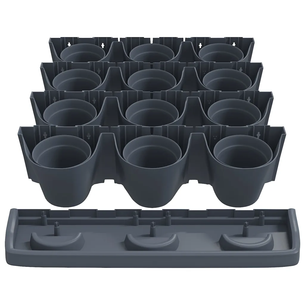 Komplektis on 12 antratsiithalli polüpropüleenist taimepotti kogumahuga 12 x 0,75 l, mis moodustavad ühe ühtse vertikaalse istutussüsteemi.