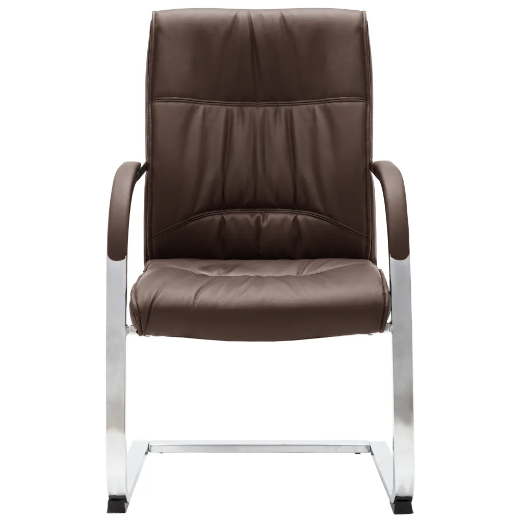 See vetruva raamiga kontoritool on mõeldud mugavaks istumiseks kontoris või koosolekuruumis. Pruunist kunstnahast iste ja seljatugi pakuvad pehmet tuge, samal ajal kui kõrge seljatugi aitab hoida selga loomulikus asendis pikema tööpäeva jooksul. Kroomitud vetruv jalaraam lisab istumisele kerget painduvust ja tagab hea stabiilsuse.