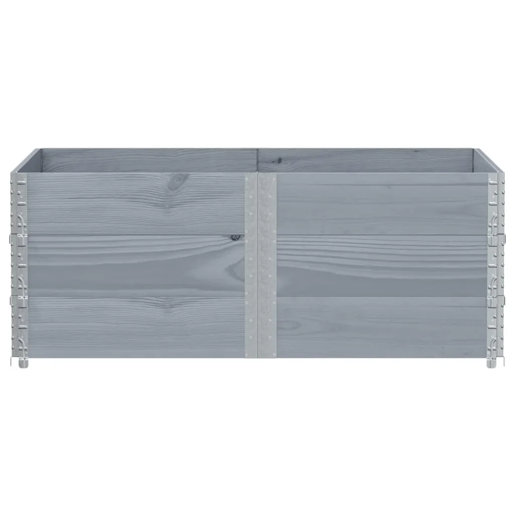 Komplekt sisaldab ühte halli männipuidust virnastatavat taimekasti mõõtudega 150 x 100 x 60,5 cm koos tsingitud metallnurkade ja hingede süsteemiga. Täiendavad samasugused taimekastid virnastamiseks ei kuulu komplekti.