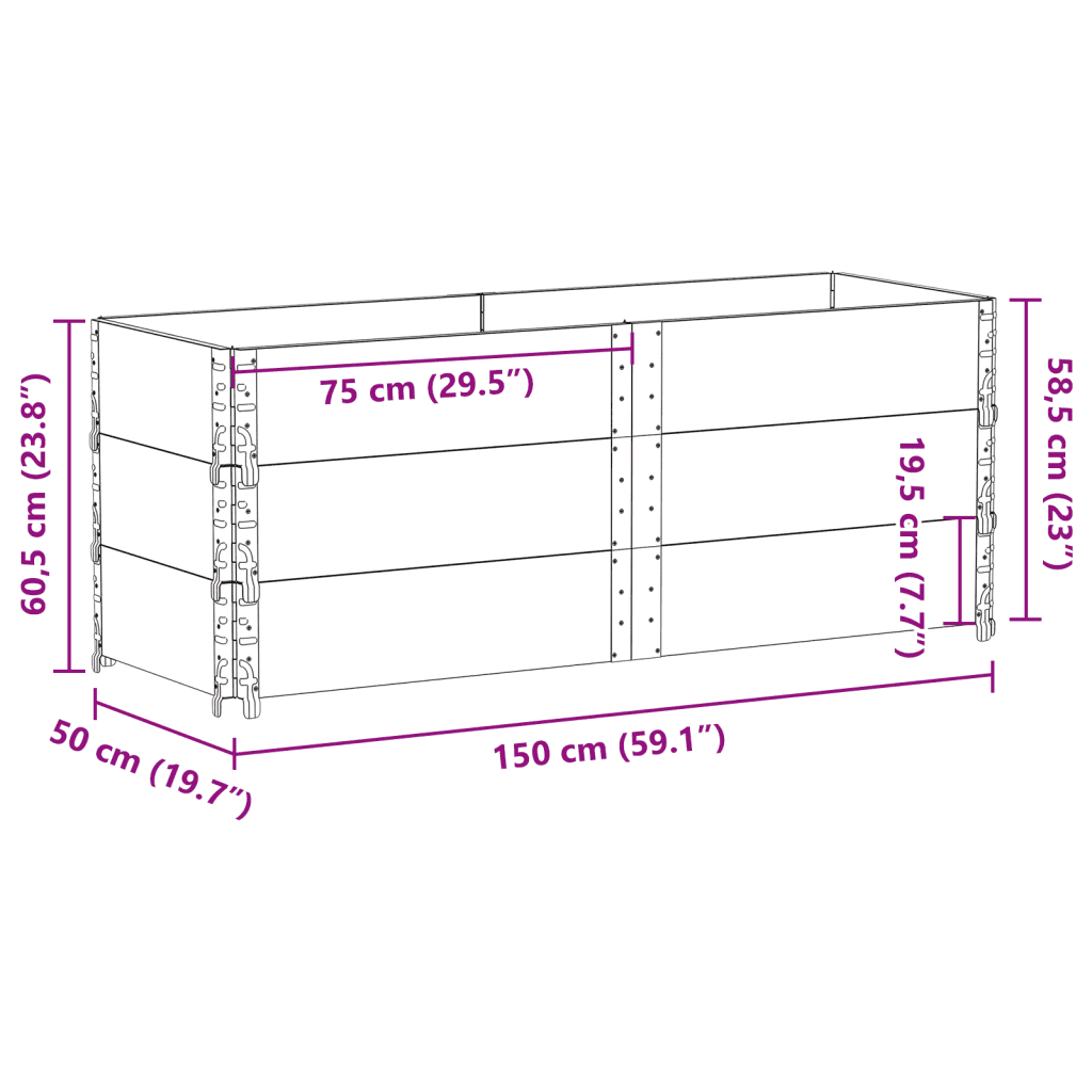 • Praktilised mõõtmed 150 x 50 x 60,5 cm (pikkus x laius x kõrgus) pakuvad rohkelt istutusruumi, samas sobides hästi erineva suurusega õuealale.