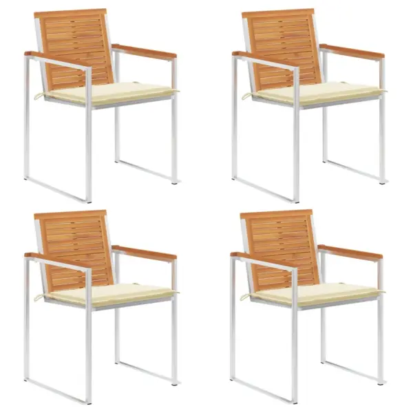 See komplekt ühendab vastupidava akaatsiapuidu ja roostevaba terase, pakkudes usaldusväärset istumisvõimalust õues. Kreemjad padjad lisavad mugavust ning virnastatav konstruktsioon teeb toolide hoiustamise lihtsaks. Kui otsid praktilist ja esteetilist lahendust oma aia või terrassi söögialale, on see nelja aiatooli komplekt funktsionaalne valik.