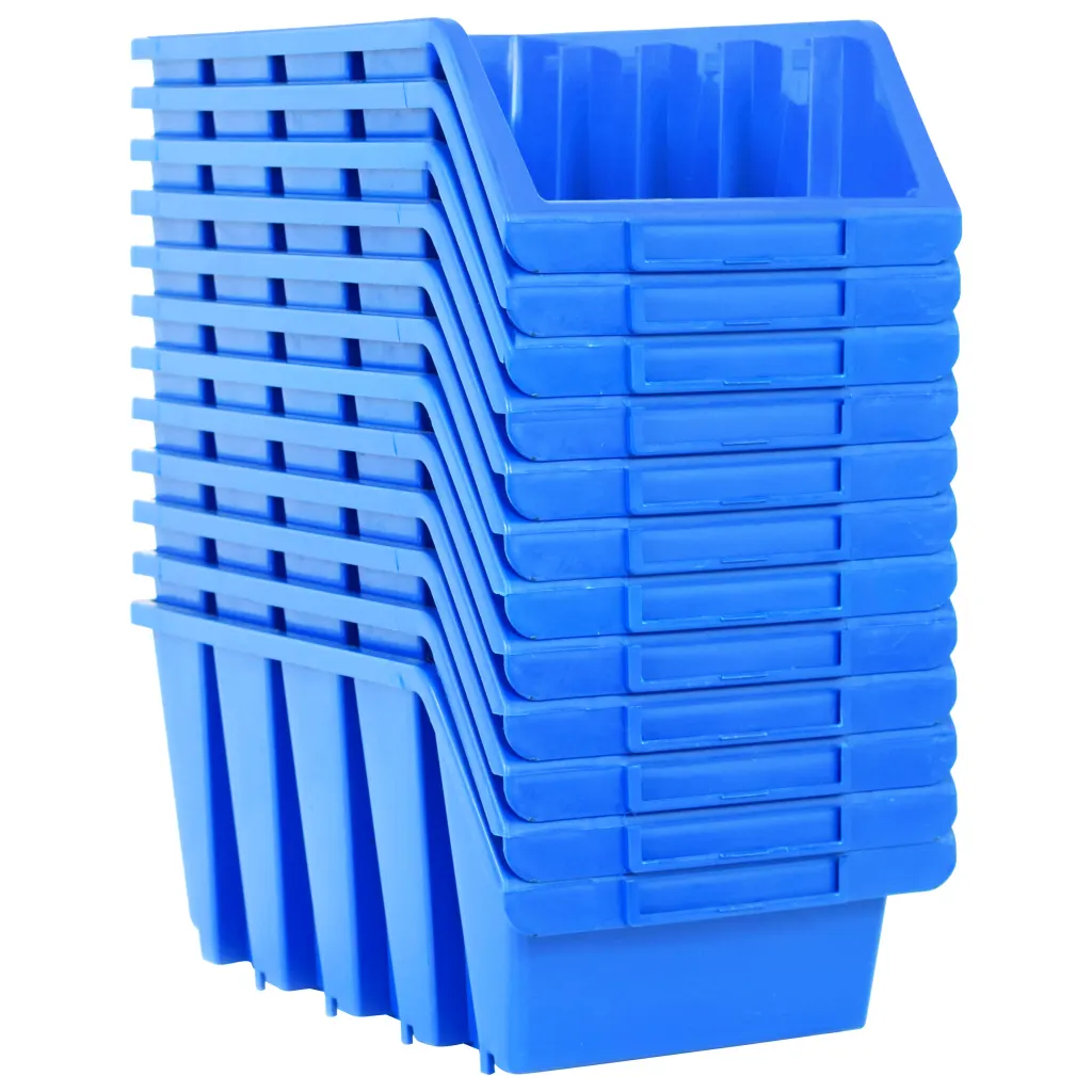Need sinised virnastatavad plastist hoiukastid aitavad hoida kruvid, naelad, mutrid ja muud väikesed osad ühes kohas ning hõlpsasti leitavad. 14 sildiavaga kasti komplekt sobib garaaži, meisterdamisruumi või töökotta, kus on oluline ruumi kokku hoida ja detailid selgelt liigendada.