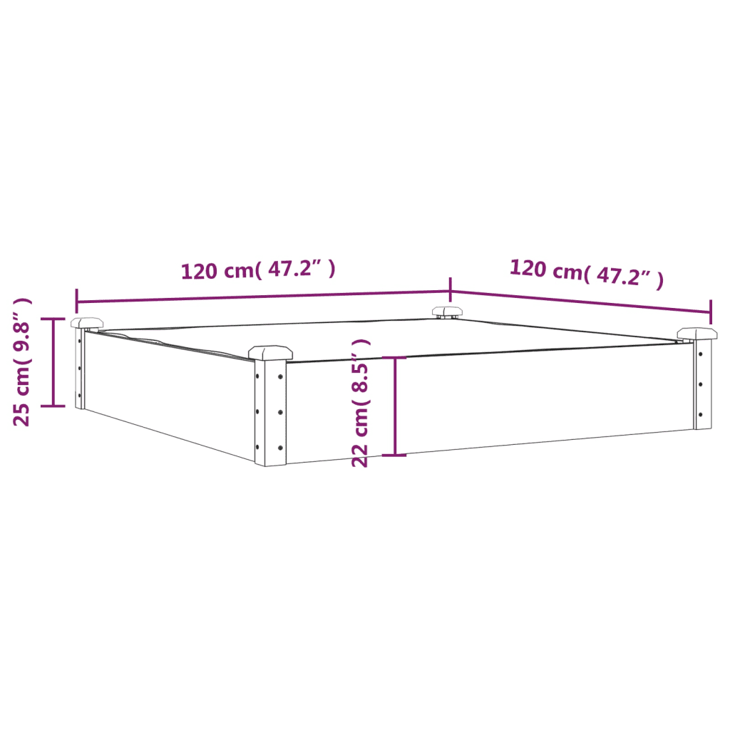 • Ruumikad mõõtmed 120 x 120 x 25 cm – sügav ja lai istutusruum pakub piisavalt kohta erinevatele taimedele, alates juurviljadest kuni õitsvate lilledeni.