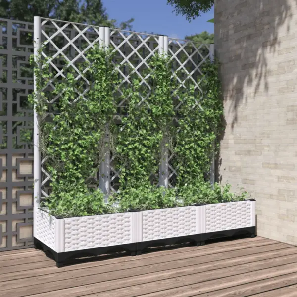 Kui soovid ühendada istutuskasti ja ronitaimede toe ühes praktilises lahenduses, on see valge polüpropüleenist istutuskast hea valik. Integreeritud võre, mahukas istutusruum ja kergesti hooldatav materjal teevad sellest funktsionaalse lahenduse nii aia, terrassi kui ka rõdu rohelisemaks muutmiseks.