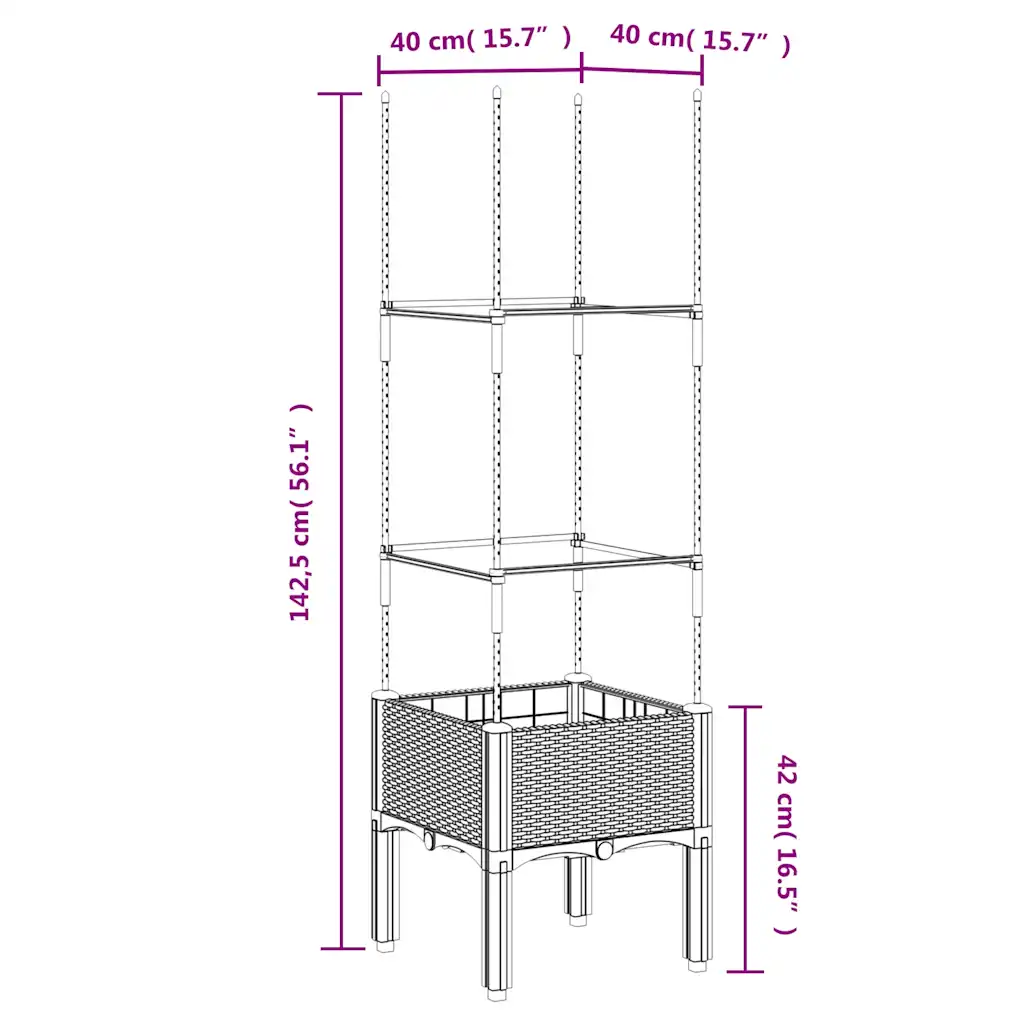 See võrega kõrgendatud taimekast pakub mugavat lahendust ronitaimede, köögiviljade ja lillede kasvatamiseks aias, rõdul või terrassil. Vastupidavast PP-plastist rotangimustriga kast on kerge, samas tugev, ning kõrgendatud disain koos integreeritud võrega aitab taimede eest paremini hoolt kanda.