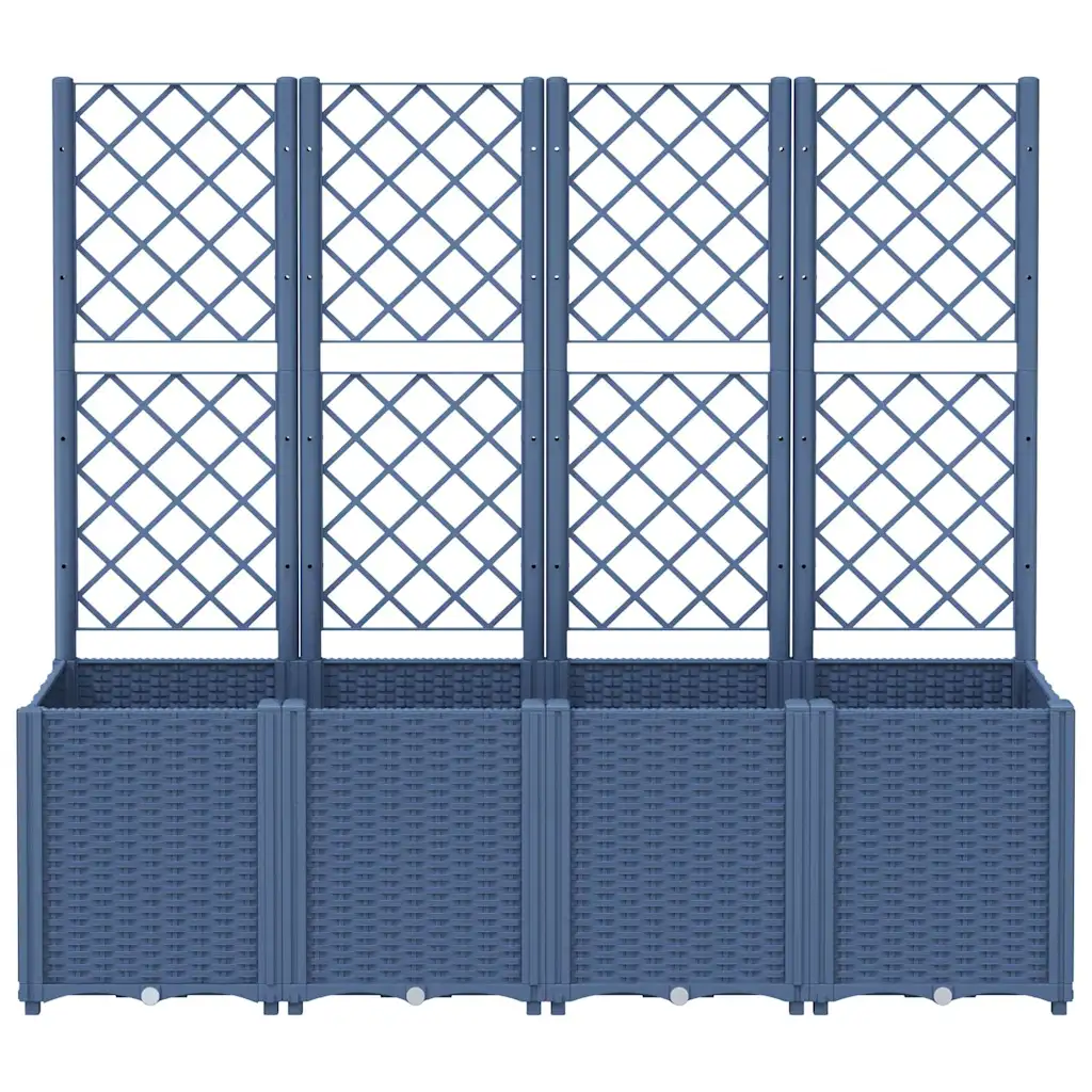 See võrega modulaarne taimekast pakub avarat kasvupinda ning tuge ronitaimedele, luues korrastatud ja rohelise piirde teie aeda, rõdule või terrassile. Nelja lillekasti ja integreeritud võrega konstruktsioon sobib nii köögiviljade, lillede kui ka dekoratiivsete ronitaimede kasvatamiseks, lisades samal ajal välialale rotangimustriga sinine halli ilme.