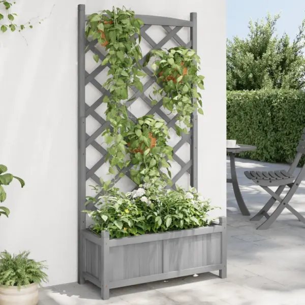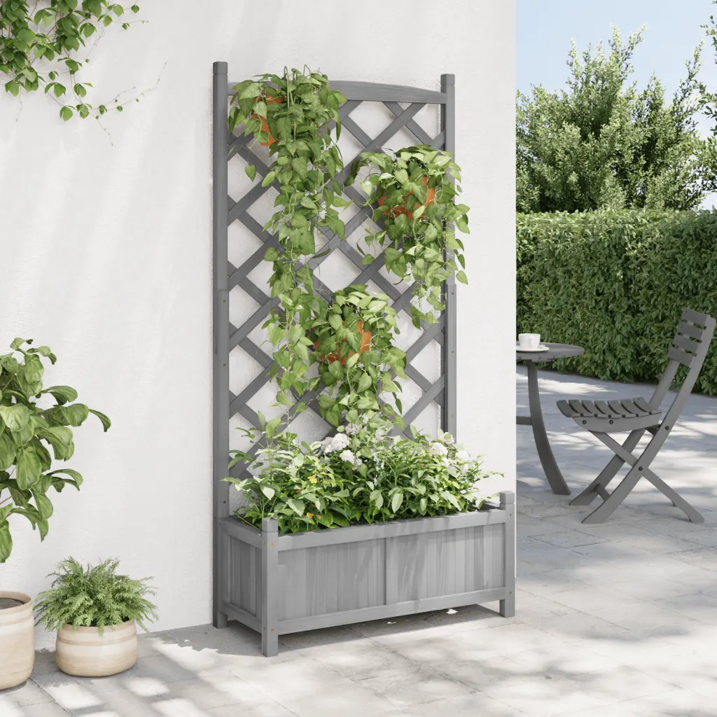 See võrega taimekast on praktiline lahendus, kui soovid kujundada vertikaalset haljastust piiratud pinnal. Tugevast nulupuidust hall istutuskast pakub piisavalt ruumi taimedele ning kõrgendatud võre toetab ronitaimi, luues dekoratiivse rohelise seina vastu seina, aeda või terrassinurka.