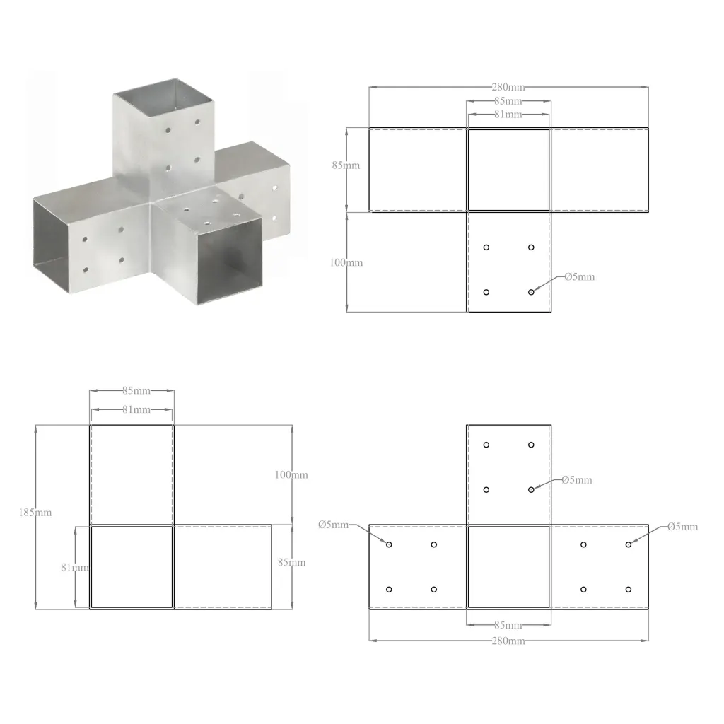Kui soovite luua vastupidava puidust konstruktsiooni, kus postid ristuvad neljas suunas, pakub see X-kujuline kuumsukelgalvaanitud postiühendus lihtsa ja töökindla lahenduse. Tänu eelpuuritud aukudele ja sobivusele 81 mm postidele aitab see kiirendada ehitustöid ning tagab ühenduskoha stabiilsuse pikaks ajaks.
